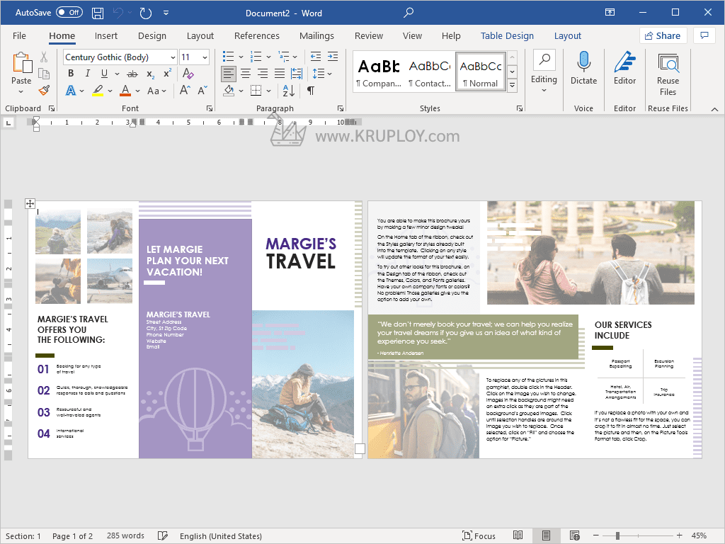 โปรแกรม Word เป็นหนึ่งในชุดโปรแกรมของ Microsoft Office 365 ที่สามารถให้ผู้ใช้งานสามารถสร้างและออกแบบแผ่นพับได้อย่างสะดวกในเพียงแค่ไม่กี่คลิกเท่านั้น โดยสามารถทำตามได้ดังนี้